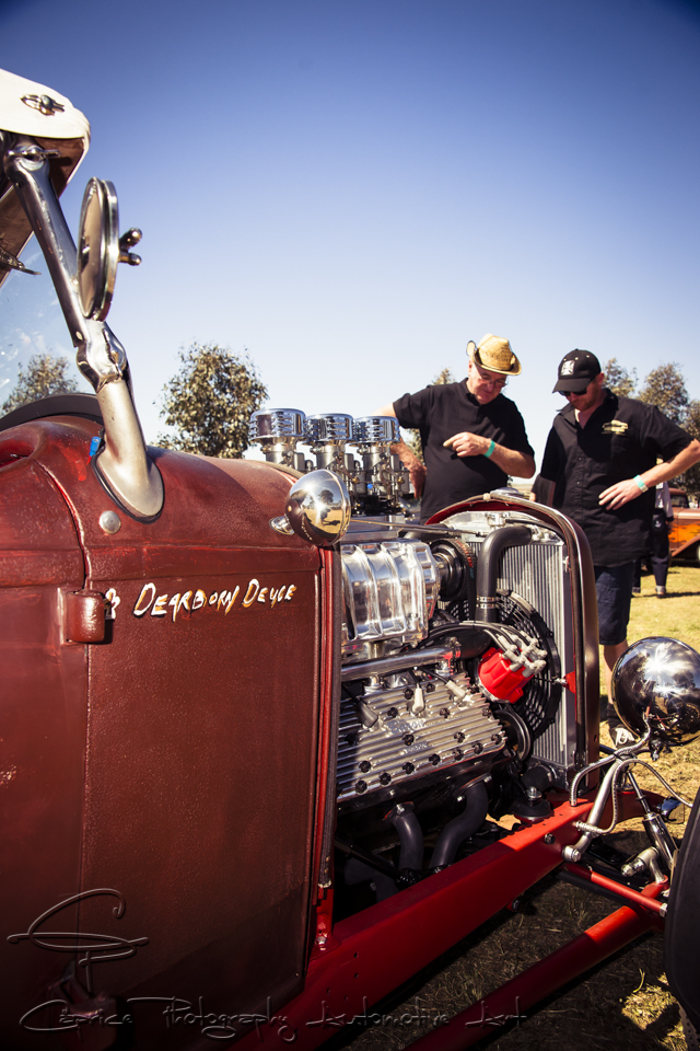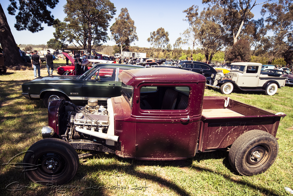 The new track meant faster racing due to its smoothness with a water truck on hand to dampen the dust when required. All manner of vehicles frequented the strip throughout the weekend from classic four bangers on wire wheels, Aussie sixes and Yanky eights through to purpose built speedway cars and drag machines. Not to be left out are the bikes! Everything from two strokes customized into choppers through to classic Nortons, Indians, Hogs and Speedway bikes ran the eighth mile dirt strip.