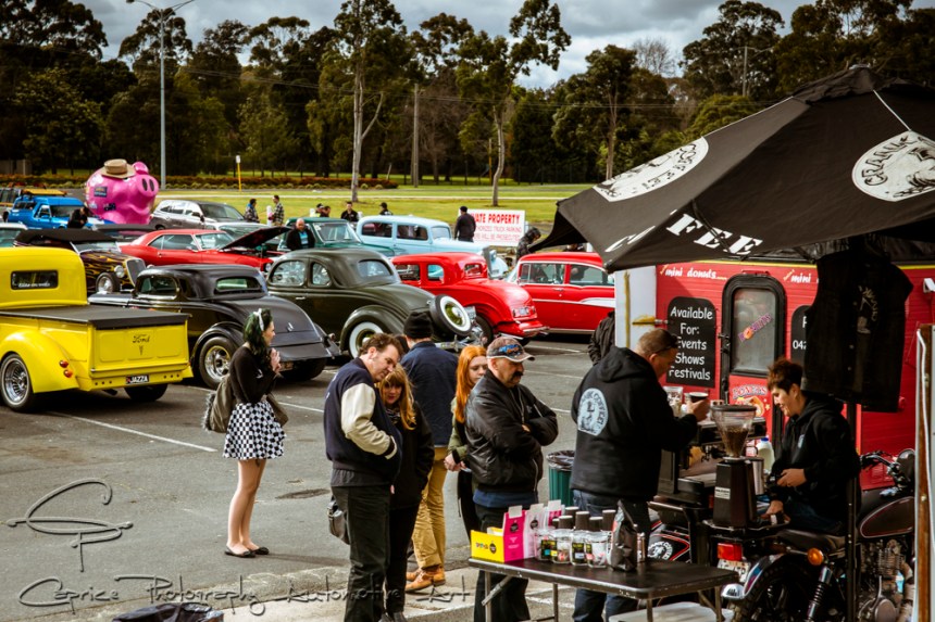 With special invites going out to the Horsepower Alley Heros bringing along a variety of drag cars and the Victorian Drag Boat club thanks to Michelle from Bright Design showcasing their highly visual and just as tough drag boats and neither group afraid to fire them up for a carpark warm up, it just added another element to the eclectic array of custom metal and fibreglass that could be found on show in the main carpark! Flanked by coffee and doughnut stands and trade stands, the vast blacktop soon filled up with all manner of cool custom classic and led sleds, old s’cool rods, street rods, Aussie and American classic and muscle cars with a smattering of European and English custom rides parked in style thanks to Goran and Nick’s creative work!