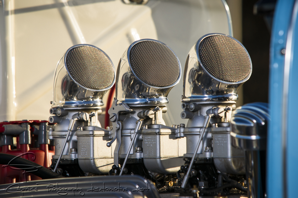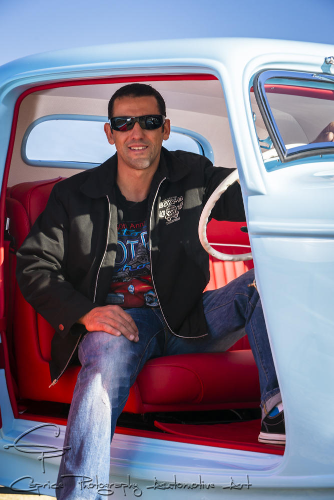 Mario’s baby blue three window coupe, while following the traditional styles of the sixties hot rodding era, has embraced the craftsmanship found in today’s aftermarket catalogues while still retaining the old school rules. Was this a childhood dream of Mario’s to own a hot-rod? “Not really, I had three Chevs originally. I have the 57 Hardtop and while I was building that one, I bought a sedan as a daily driver and I also had a 55that needed full restoration. I thought “why do I want three Chevs?” so I got rid of the 55 and that’s why I went to a hot-rod, something different than the Chevs. My wife Lynette wanted a Tudor but it wasn’t the style I was after so I went this way with the dickie seat in a coupe.” “Once I started looking around, I knew I wanted a thirty two in traditional style and from day one, it was supposed to be a simple build. It wasn’t supposed to be as glossy as this, it was to be a bit more of a rat style rod. Because I’m so particular with the Chev, I wanted this to be the car to not worry about and have fun. Once I started, I found I just couldn’t build a rough car, I just couldn’t do it”