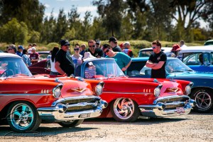 The biannual Chev Convention put on by the 55 56 57 Chevrolet club of Victoria found itself in a new location this year. Situated on the banks of the Murray River, the twin towns of Echuca and Moama played host to the club and participants of the 11th bow tie spectacular. The historic port of Echuca with its paddle steamer fleet, historical buildings and open view streetscape complete with horse and carriage rides was the perfect setting for a family weekend away combined with their favourite vocation of classic cars and cruising.