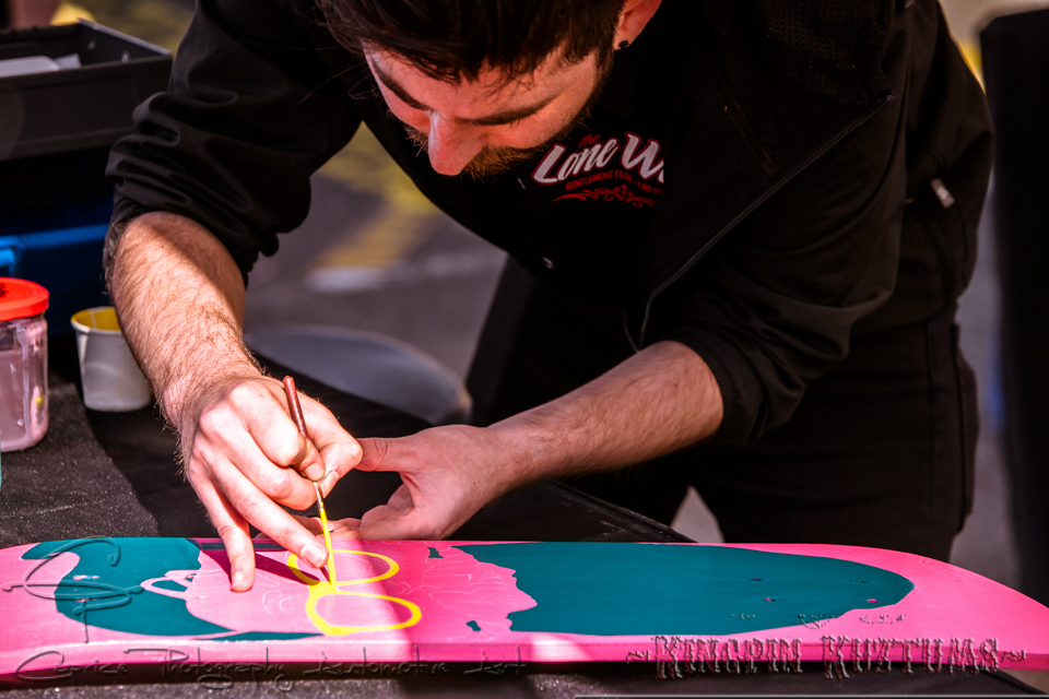 Artistic integrity could be found throughout the festival thanks to a close knit group of friends, each exerting a high quality styling and finish in their field, from Luke at Airbrush Creations striping cool ass rides, Killa Courts from Cardinal Sin Airbrushing demonstrating her prowess in the art of creative drawing while Airbrush Effects owner, Jamos Cortorillo skilfully wielded his airbrush for a fine art finish as Steven Portelli of RAW custom art branded skateboards with own unique imagery!