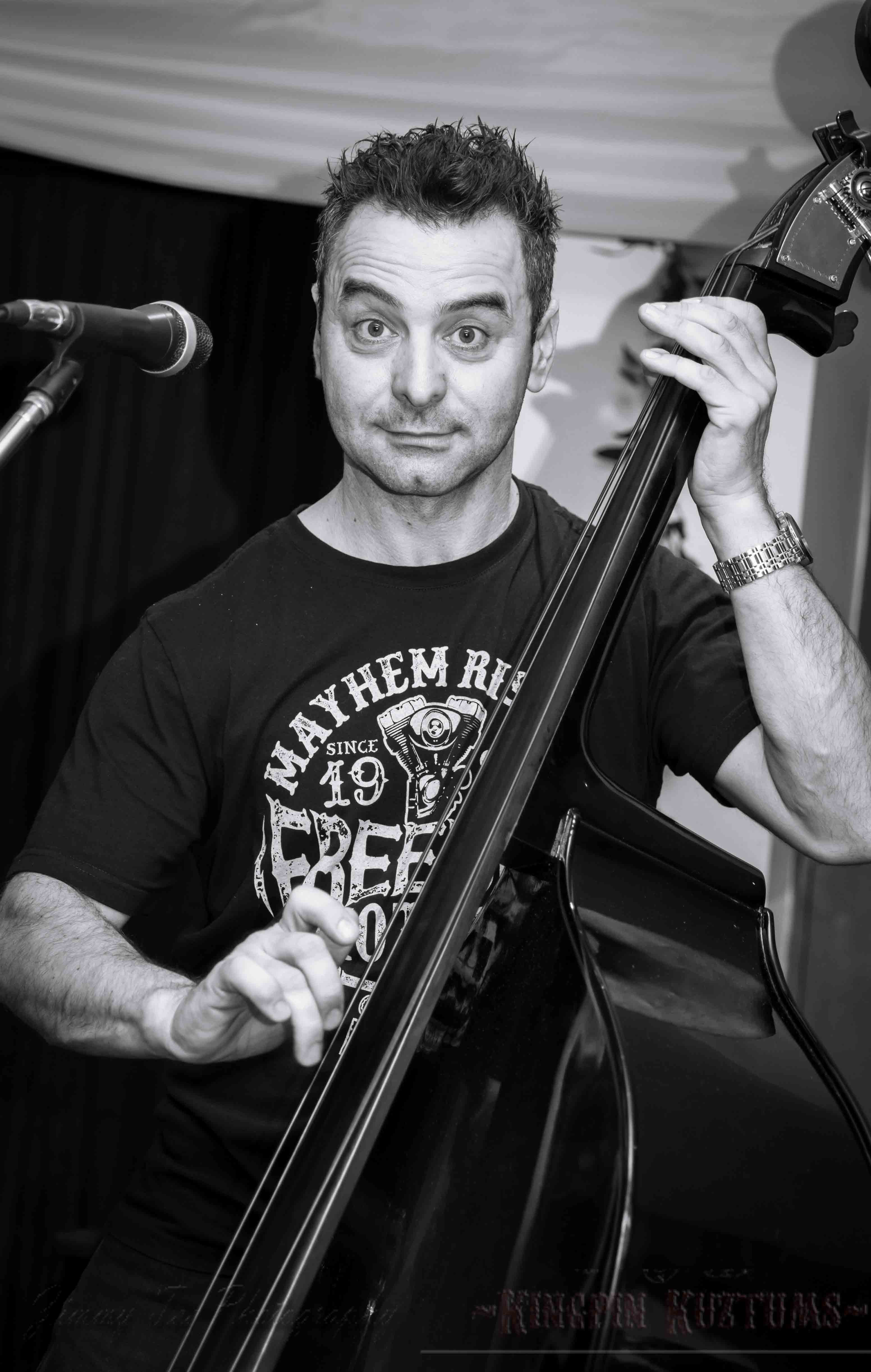 The laid back atmosphere in the car park was in direct contrast to energetic rockabilly dance fever stirred up by the two popular bands firing on all cylinders as the vigorous beat of their music resonated off the timber lined walls of the classic style function room with its centre piece bar, setting the perfect ambiance for a rocking great night out with friends! Itchy Fingers hit the stage first, doing what they do best and heated up the dance floor before A Band Called Twang came on and delivered in spades what the enthralled rockabilly dancers had anticipated! These two bands definitely set the stage for the coming attractions on Sunday at The Sandown Park Hotel, hence why they call it a warm up party!