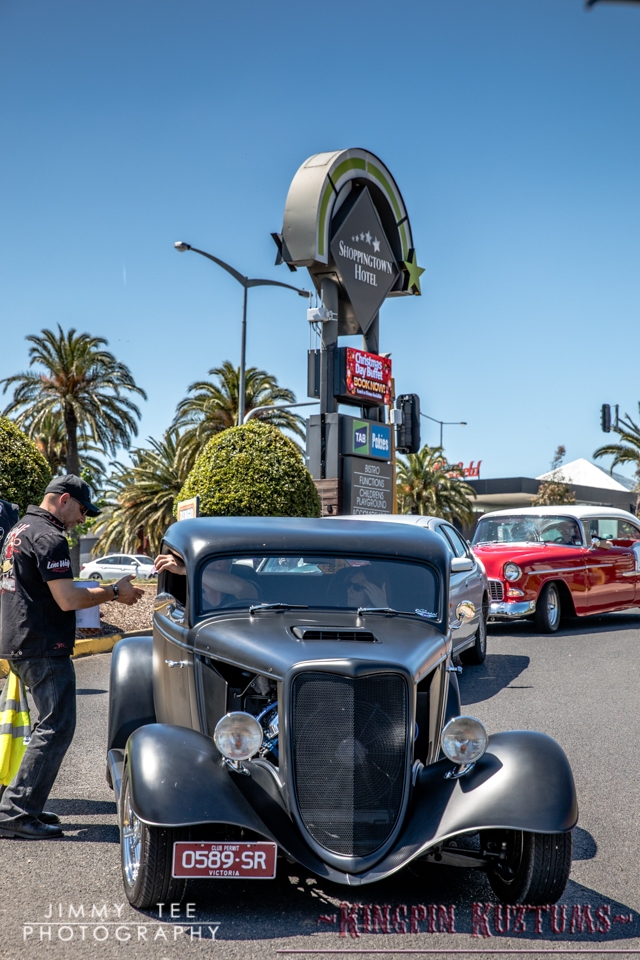 As 2016 rocks and rolls its way into the twilight of its conclusion, we find ourselves in the northern suburbs of Melbourne, Doncaster, overlooking the hazy hue of the city in the distance. Stepping away from the traditional wide open carparks we’ve become accustomed to, we find ourselves confronted with a multi-level complex giving a new dimension and twist to the traditional style parking. Rob being the kind of guy to not shy away from a challenge, took it in his stride and produced a unique layout of cool rides, trade stands and food venues giving the rockabilly scene more of a street festival than the tried and tested ground level parties we’ve become accustomed to.