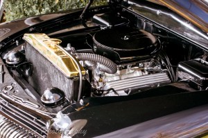 The unknown small block Chevy engine was replaced with a healthy and reliable rebuilt 350 ci motor while retaining the trusty two speed powerglide. Twin exhausts and owner installed flame throwers add that fifties styling and sound while cruising the streets! A repressed radiator keeps it all cool with the aesthetics of a copper top tank complimenting the finned rocker covers and fifties Cadillac air cleaner!