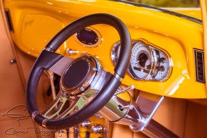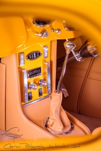 Interior is all comfort and style, a consolidation of ideas between owner and builder. “If I came up with an idea that wasn’t suitable, he would either just change it for the better or talk to me about it saying have you considered this? We were always opened to his ideas as he is very skilled at what he does” remarks Joe. The enclosed two seat tan interior encompasses all the comforts of a late model vehicle including air conditioning and a reverse camera housed in the interior mirror.