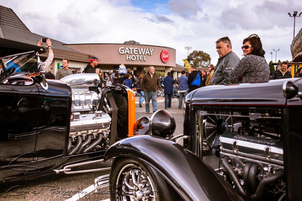 As I sat in my hotel room on Sunday morning at my makeshift work station, lap top open editing the previous night’s photography from the warm up party at The Monash Hotel, my mind wandered over the events of the evening. While there was a hive of activity in the venue itself thanks to the two great rockabilly bands scheduled to entertain the patrons throughout the evening, local heroes Itchy Fingers and the highly anticipated Queensland five piece, A Band Called Twang, the car park itself remained fairly quiet with a handful of dedicated cruisers braving the chilly night air to come on down for a look and a listen. Don’t get me wrong, the variety of rides spread amongst the tree-lined parking lot were pretty cool in their own rite, from a tough 67 Chevelle, a matt black custom 49 Merc through to a ground scraping Beetle and a traditional style flathead roadster contrasting against the big American classics glistening under the street lights just to paint a picture for you! Shining a like a beacon in the night was the distinctive red and white coffee van of Betty & Ruby, on hand for anyone looking to warm up their hands and hearts around a hot brew! Read More →