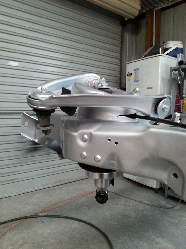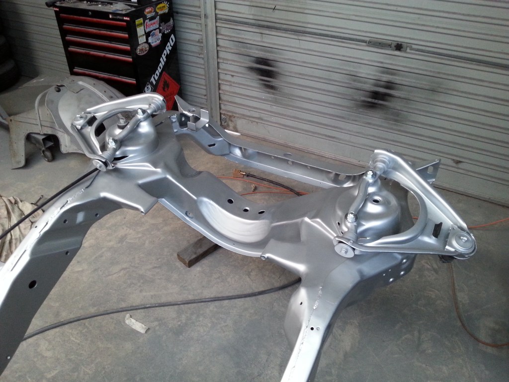 Reassembling the chassis was a time-consuming task, as each piece had to be cleaned to a like-new condition if it hadn’t been painted. I also had to be careful when fitting the various suspension parts with their new bushes to avoid scratching the freshly painted surface. It was a delicate balancing act, but seeing the wheels on and having a rolling chassis again was a significant milestone. Being able to roll the car outside and free up some garage space during the day was a gratifying experience, and it added a sense of progress to the project.