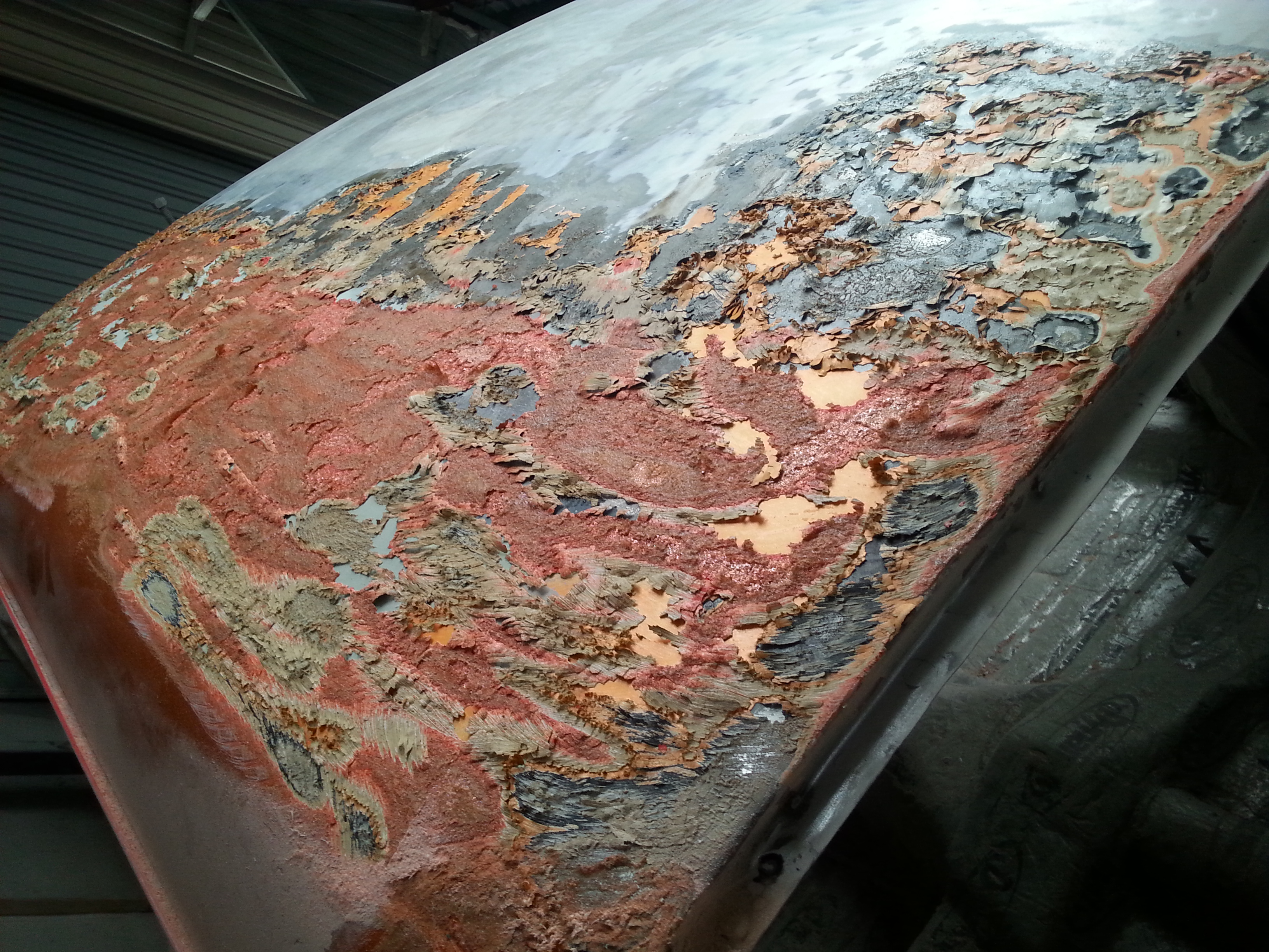 Stripping back the roof was a task I had been dreading, but it was a necessary one. Although the car had been previously painted, a significant portion of the high-flek paint on the center of the roof was missing. It seemed to have lifted during the car’s idle period before I bought it. Additionally, there were cracks in the paint, revealing the filler underneath. It was clear that the roof needed to be stripped back.
