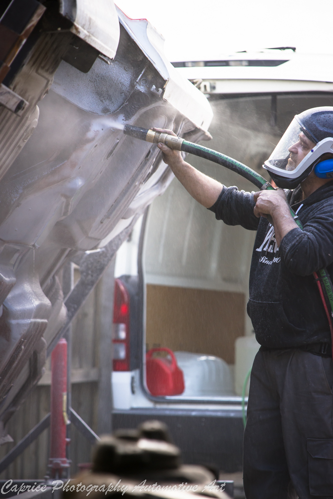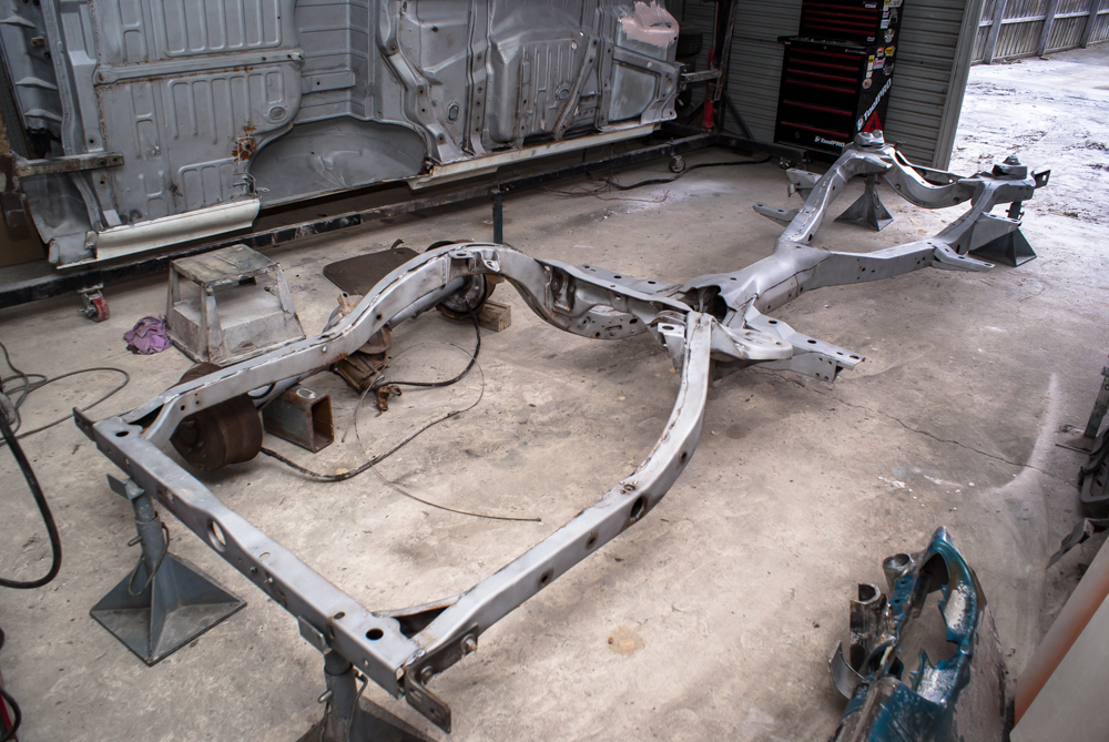 To clean up the chassis, I started by stripping down the front end one night and finished the rear end the next day. This left me with a pile of dirty parts and an incredibly filthy chassis. It was clear that a thorough cleaning was necessary, so I enlisted the help of John from Dustless Blasting. He came to my house and spent several days blasting away the accumulated dirt and grime, revealing a bare metal surface that was ready for repairs and a fresh coat of paint. John also took care of cleaning numerous other parts and panels, saving me a tremendous amount of time and effort.
