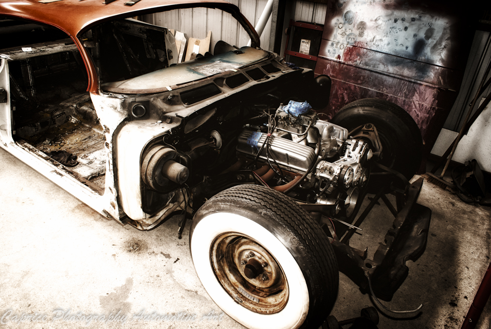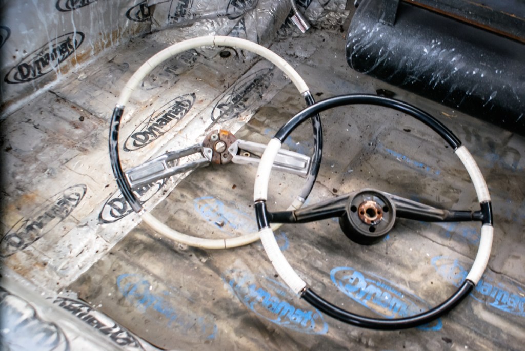 The steering wheel is an item I like for the fact that it is different and hard to identify. I came across the wheel when photographing a friend’s hot rod. While chatting about the progress of the car, I mentioned about the issues I was having with the dash setup. Doug, the owner of the rod, disappeared and returned shortly after holding a tired looking wheel and said “what about this?” I asked him what it was off and he said he had no idea, he purchased it at a swap-meet.