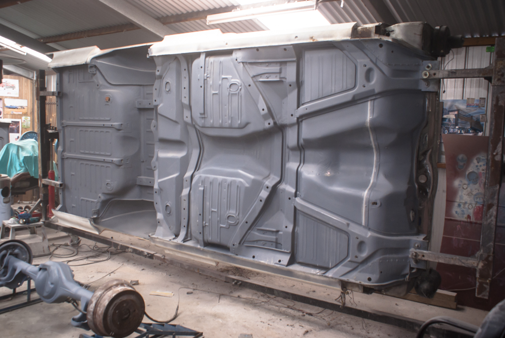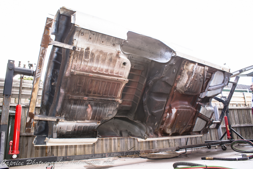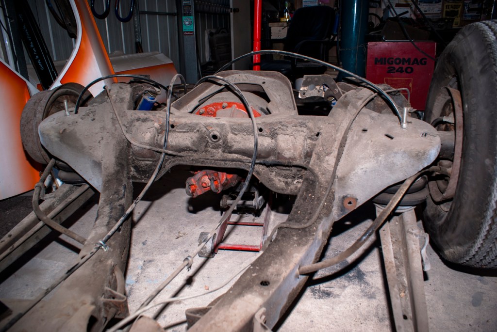 With the engine bay work completed, it was time to tackle the separation of the body from the chassis. With the help of my mates, we managed to accomplish this in just one day and placed the body on a rotisserie for easier refurbishment. As the chassis saw the daylight for the first time in 53 years, covered in layers of dirt and grime, I couldn’t help but wonder if I had bitten off more than I could chew. But there was no turning back now.