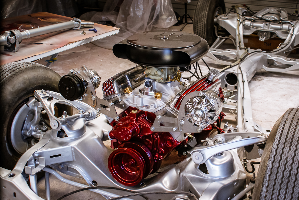 The motor is a 383 c.i. Chev with a decent sized cam and DART II alloy heads. Most of the build work on the engine bay is covered back in the December 2105 post so I won’t go over it again.