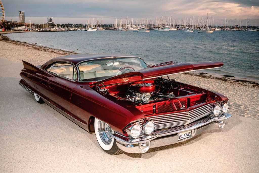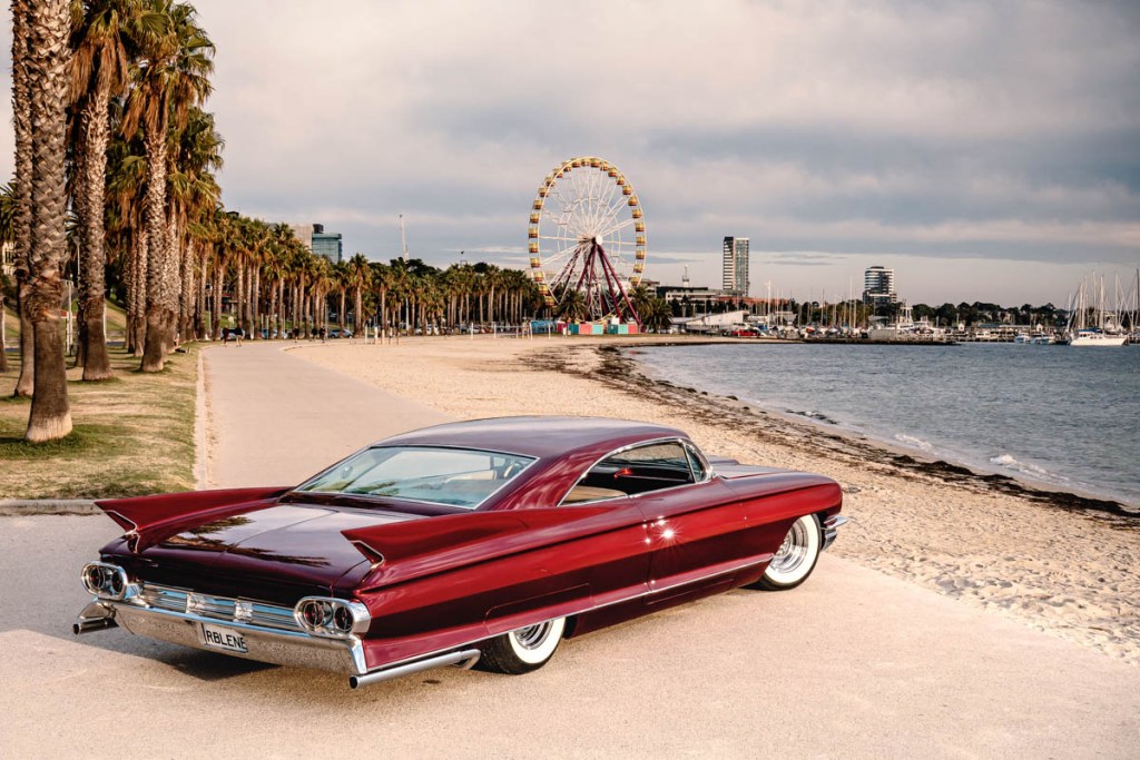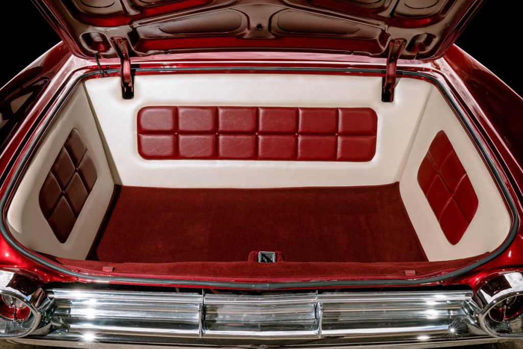 I sourced out an unholsterer who was confident enough to take on the massive task of completing such a one off interior. Mark Griff from Griff’s Trim Shop in Ballarat was the guy for the job. Mark, along with his workers, Aaron and Jarrod who both indulge in the traditional car scene set about bringing my crude renderings to life. They installed the 1961 Cadillac Fleetwood curtesy lights in the sail panels and the custom made center light I created from two different swap meet items. The seatbelts are from a GM vehicle of the 60s but I’m not sure what.