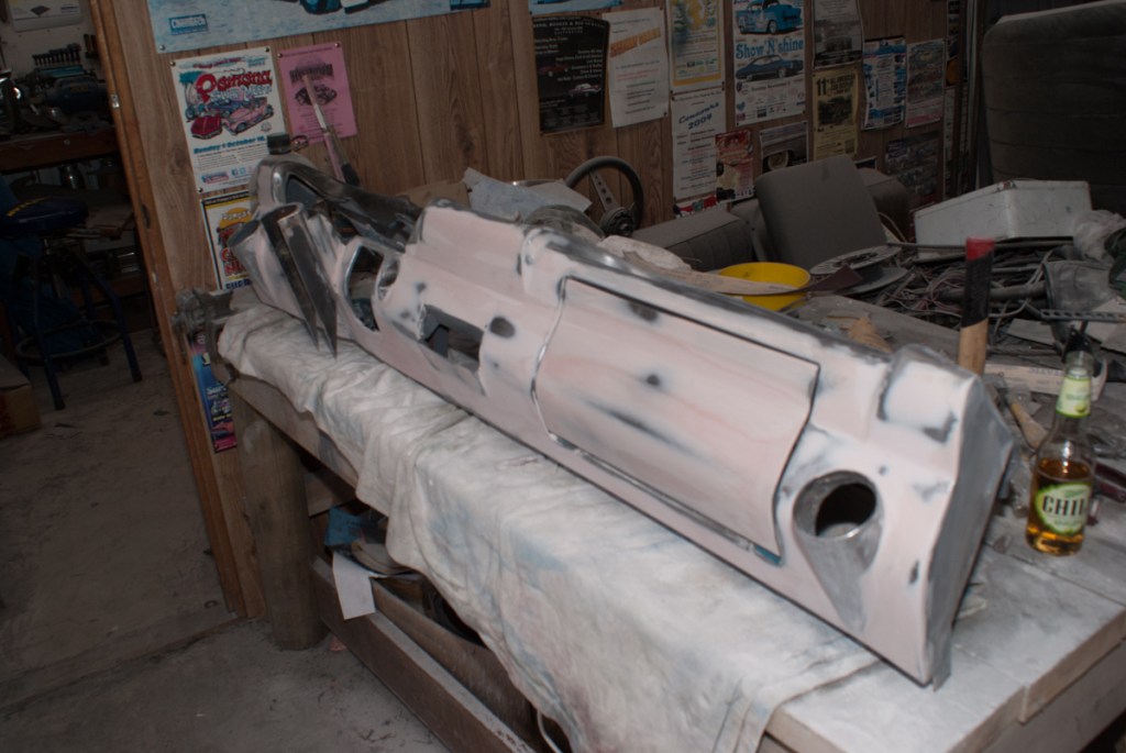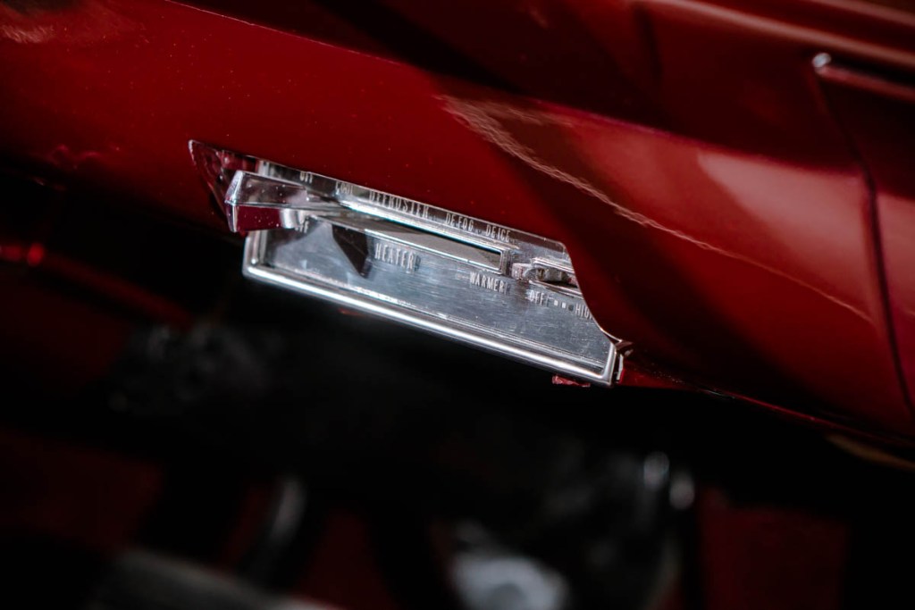 I deleted any “Chevrolet” branding from the rest of the dash. I filled in the original speaker grill as well as the radio location. I utilised the Cadillac heater controls and mounted them in the old ashtray location.