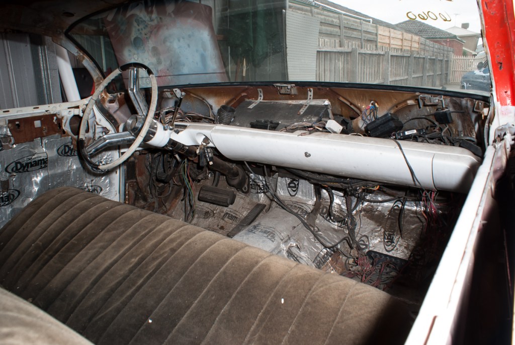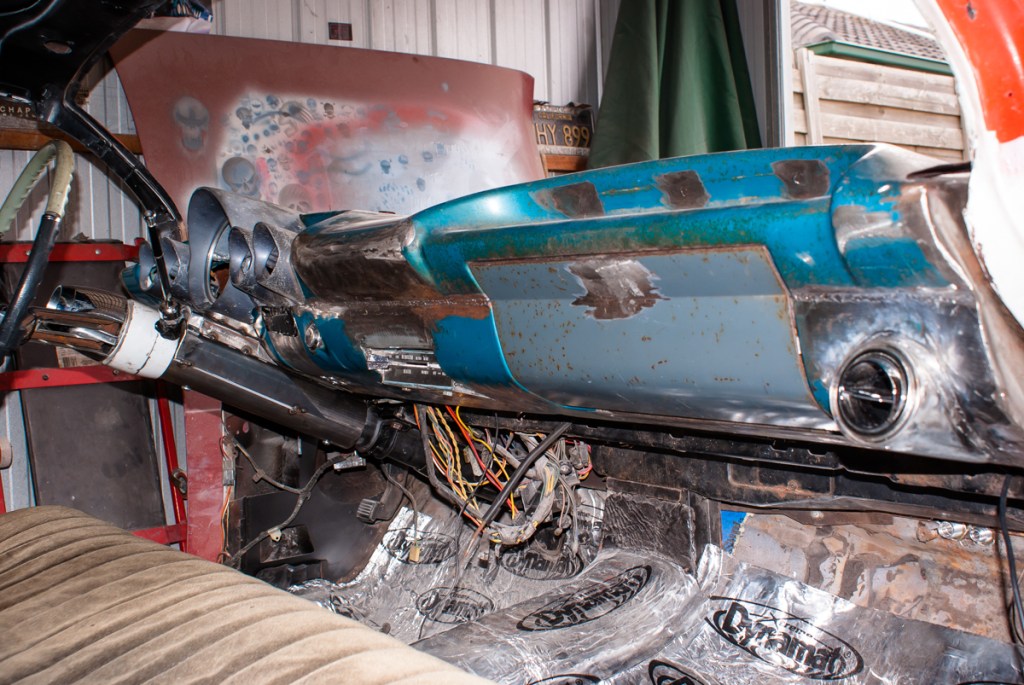 When it came time to sort out the interior, I decided that, after removing the remnants of the previous owner’s ideas and, since most of the original dash was missing, I would look for something different to use. Keeping with the sixties vibe and a dash I have always liked the look of, I chose to go down the path of the 59-60 Impala look. While I know it’s a popular choice amongst rodders and kustomisers alike, the round gauges compliment to roundness of this particular model Caddy and also allowed me to use more modern units while still retaining a traditional look.