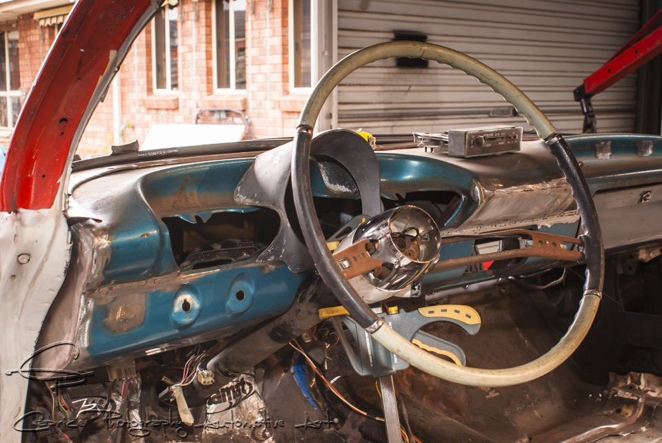 The dash itself wasn’t too far off the mark when it came to fitting. I only needed to reshape the back to sit smooth with the Caddy. The dash itself is a much deeper unit compared to the original Cadillac item. This in turn meant I now needed to modify the steering column, wheel and set up the indicator and shifter to fit ergonomically with the wheel.